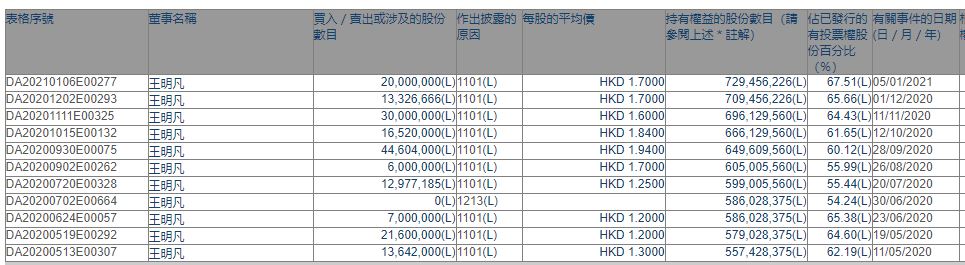 小編查了一下港交所資料,中國波頓主席王明凡由2020年5月開始增持其公司股票。包1月5日,一共增持了10次,增持超過了1.7億股。