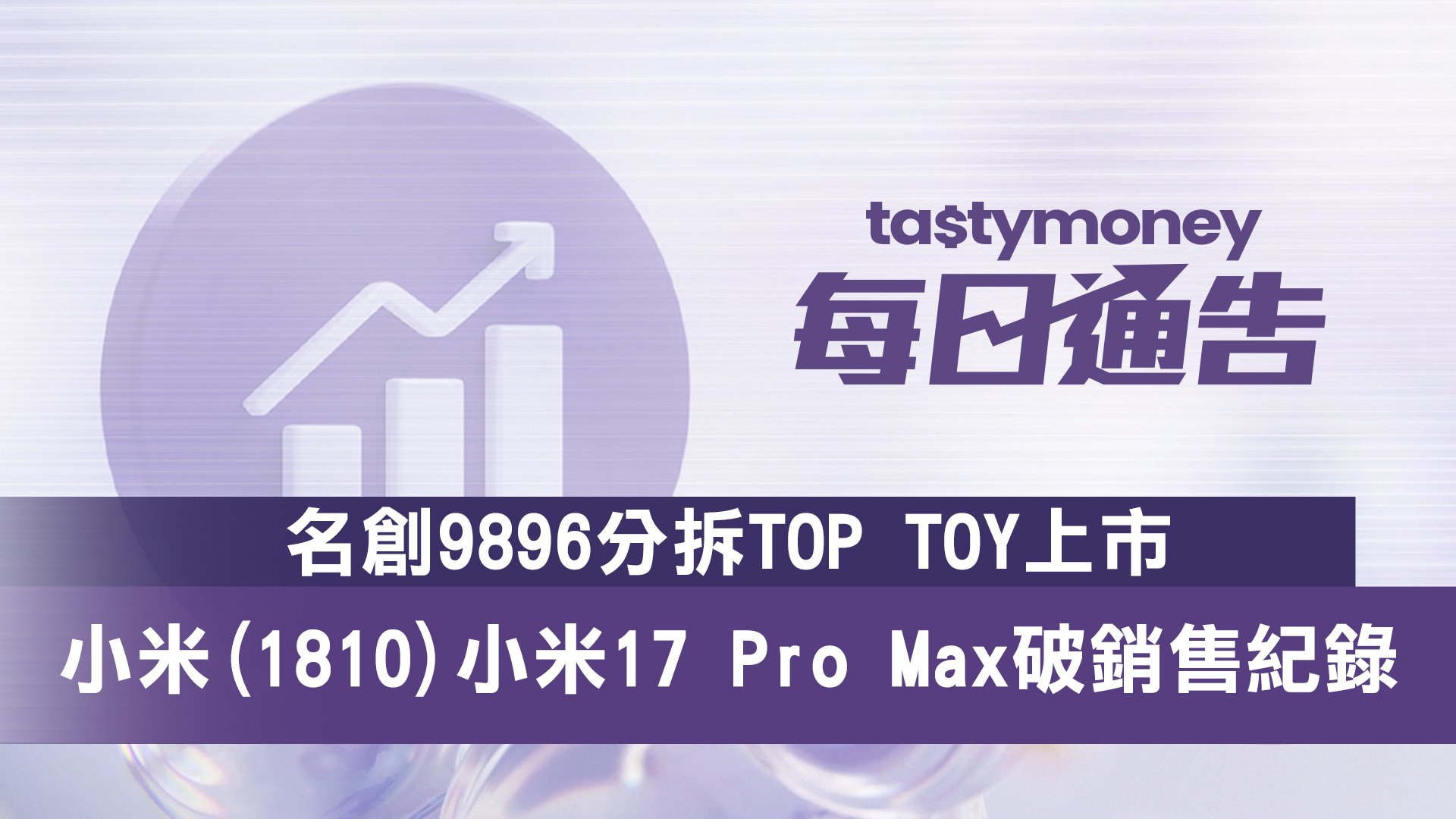 名創優品(9896.HK)公布,建議以全球發售及分派的方式分拆潮流玩具附屬TOP TOY股份,於香港聯交所主板獨立上市,聯交所已確認公司可進行建議分拆。有關詳情尚未最終確定。名創股價今日(29日)高開,早段升約4%