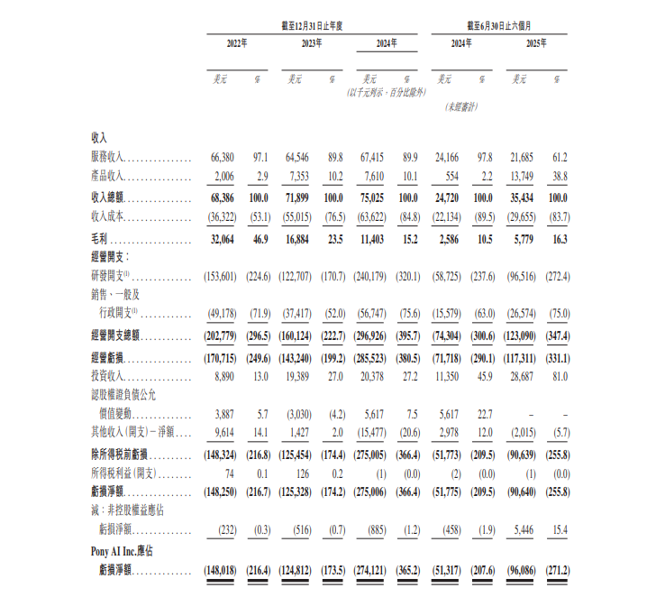 截至今年6月底止中期,小馬智行錄收入約3,543.4萬美元,按年增長43.3%,應佔虧損淨額達9,608.6萬美元,較去年同期的5,131.7萬美元擴大。今年上半年非公認會計準則經調整虧損淨額為7,442.3萬美元,亦較2024年上半年的虧損5,593.2萬美元增加。