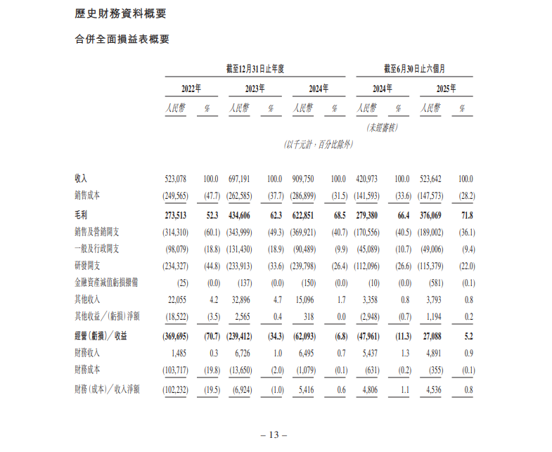 從獲利能力來看,公司毛利率分別為52.3%、62.3%、68.5%;年內利潤率分別為-97%、-70%、1.2%。毛利率呈現逐年成長趨勢,公司最近在2024年也從虧損轉為獲利。