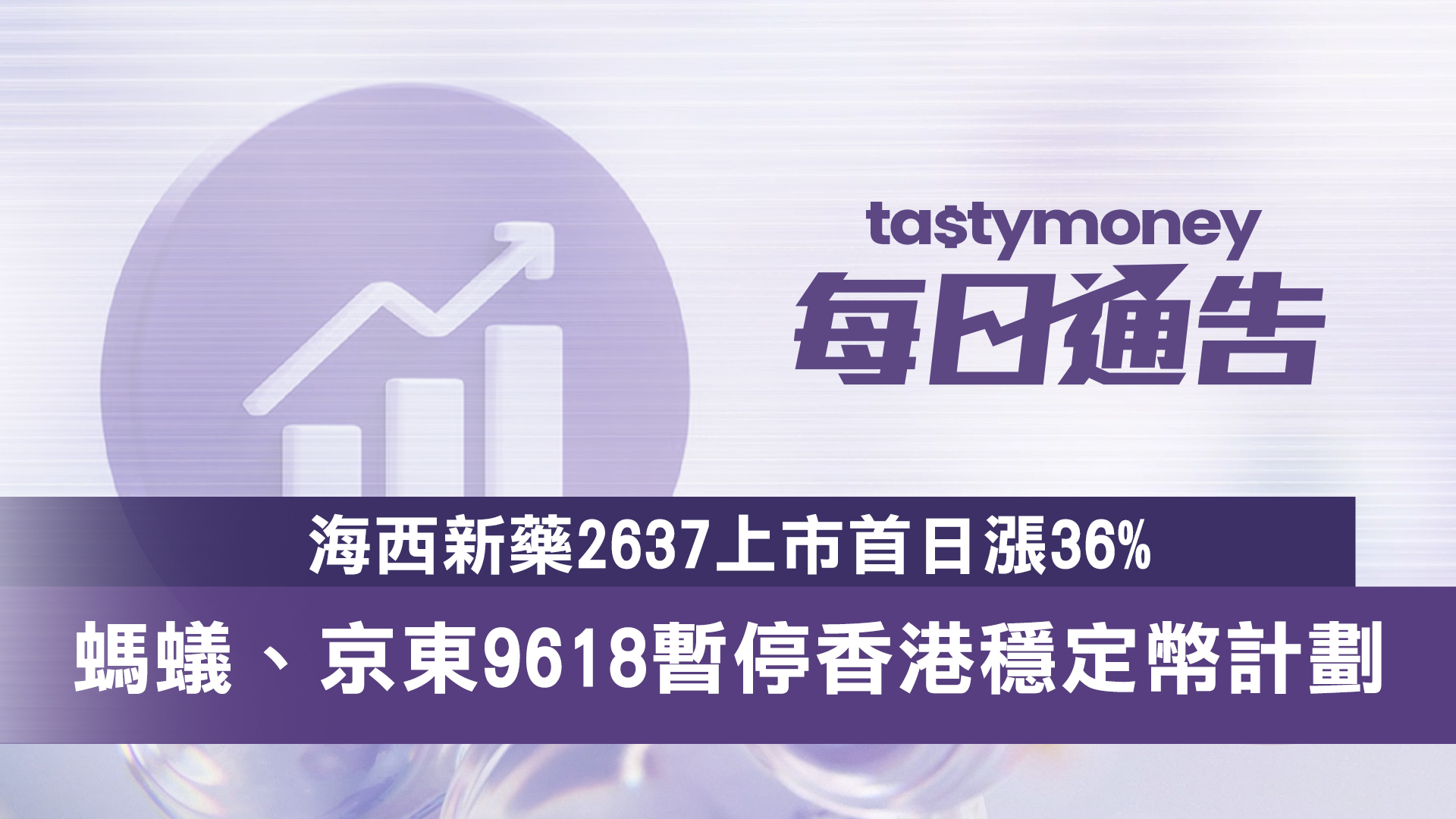 據報內地監管機構對穩定幣表示擔憂,螞蟻及京東(9618.HK)暫停本港發行穩定幣計劃。英國《金融時報》引述知情人士表示,發行民間穩定幣,被視為對「電子人民幣」的挑戰,亦擔憂央行還是私人企業擁有最終的鑄幣權。在收到人民銀行及網信辦指示後,這些企業均暫停穩定幣計劃。金管局早前表示,穩定幣條例實施第一個月,接獲77宗申請意向。截至9月底,共收到36家機構提交的穩定幣牌照申請,首批牌照預計於2026年初發放。