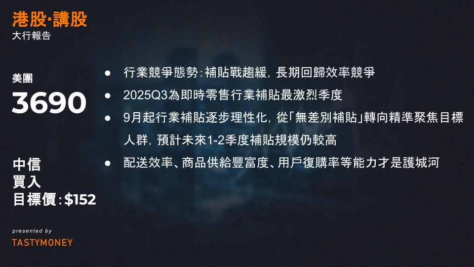 - 關鍵轉折:9月起行業補貼逐步理性化,從「無差別補貼」轉向精準聚焦目標人群(如高頻次、高潛力用戶),預計未來1-2季度補貼規模仍較高,但結構更優化。