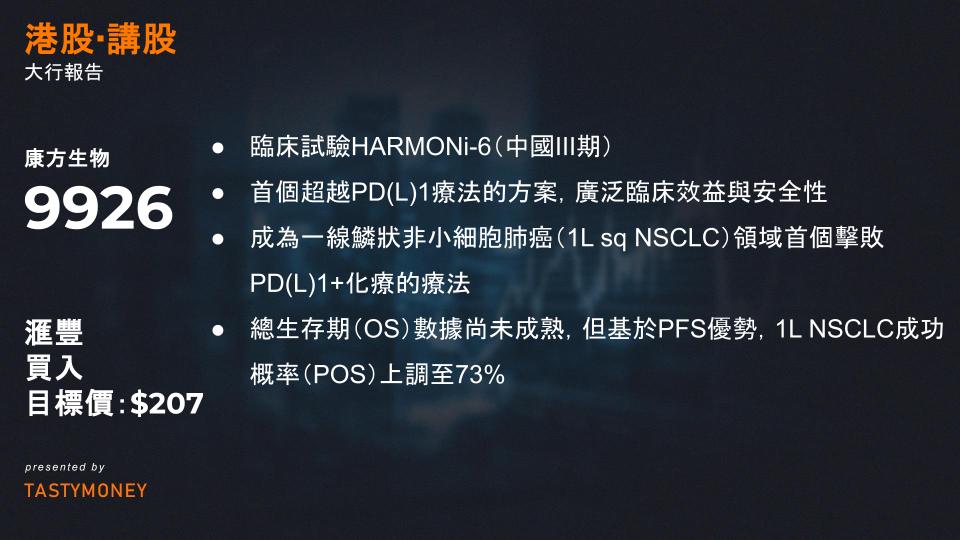 - FDA過往要求OS顯著性且偏好美國患者數據,但HARMONi試驗中非中國患者僅佔38%(約175人)。