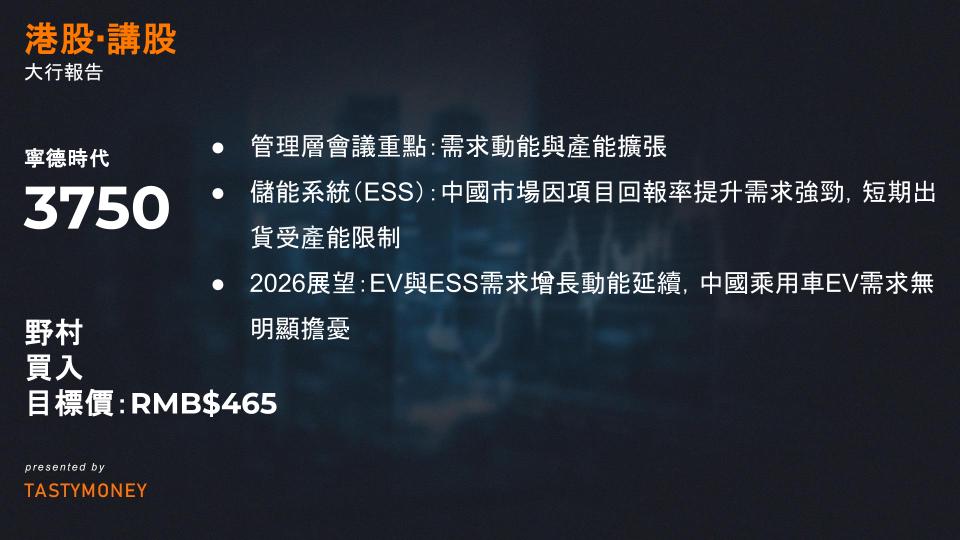 核心意義:高利用率與成本優化擴產,強化CATL於ESS與CV電動化趨勢的佈局優勢。