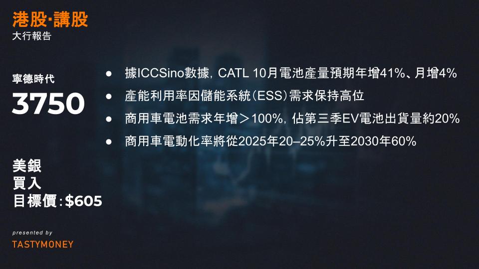 - 產能與生產:據ICCSino數據,CATL 10月電池產量預期年增41%、月增4%,產能利用率因儲能系統(ESS)需求保持高位。