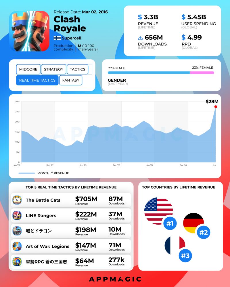 - 收入暴漲:7月單月收入達3952.2萬美元,超越Supercell旗下多款遊戲總和;