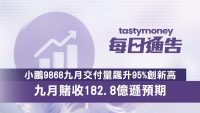 小米(01810) | 逾40,000 | 去年9月:逾1萬輛 | 今年8月:逾3萬輛 |