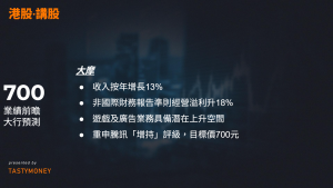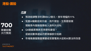 - 預測經調整淨利潤664.2億元,按年增幅約11%