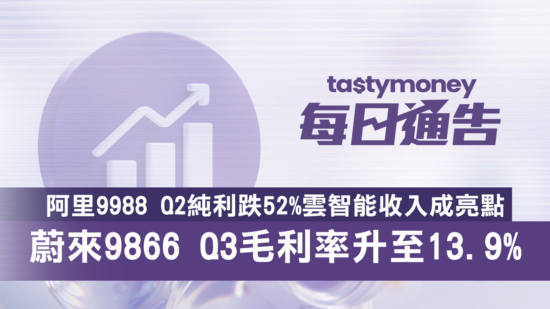 阿里巴巴(9988.HK)截至九月底止,第二季度少賺52%。純利接近210億人民幣。經調整淨利潤下跌71%,至103.5億人民幣,低過市場預期的135億。期內,收入升至2,477億人民幣,則稍高過市場預期的2,450億。中國電商集團收入1,325億人民幣,增長15%。國際數字商業集團收入近348億人民幣,升約10%。雲智能約398億人民幣,增加34%。集團首席執行官吳泳銘在業績會議上表示,至少三年內人工智能(AI)不存在泡沫。