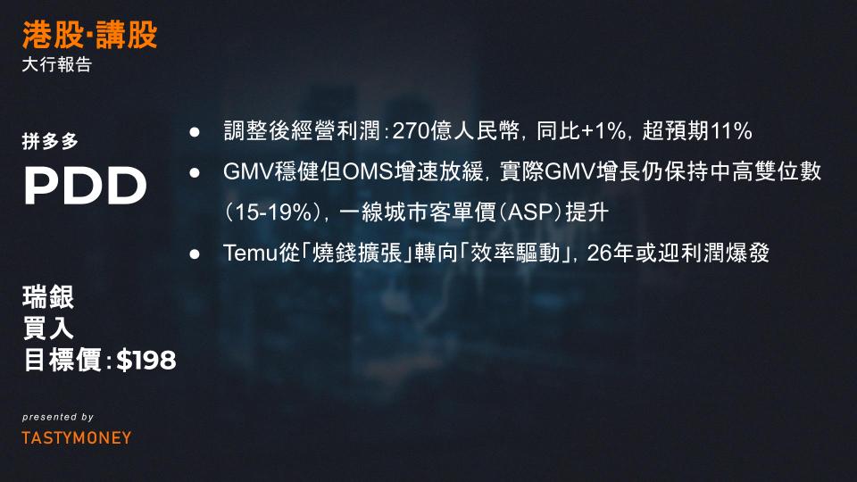 • 其他收益:利息/投資收益超預期,所得稅僅微降5%,間接驗證Temu單位經濟效益改善。