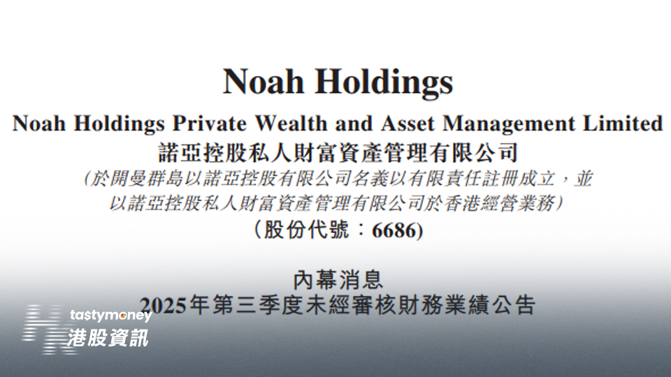諾亞控股(6686.HK)公布,2025年第3季度,股東應佔淨收益2.185億元(人民幣.下同),按年升62.6%,主要由於於聯屬公司的投資的公允價值增加所致。