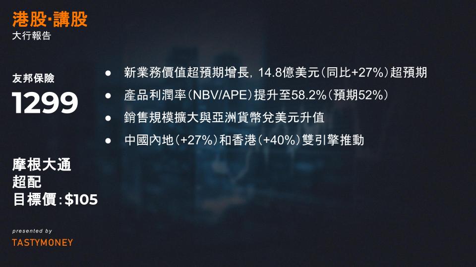- 中國內地(+27%)和香港(+40%)雙引擎推動,其中香港季度NBV創歷史新高。