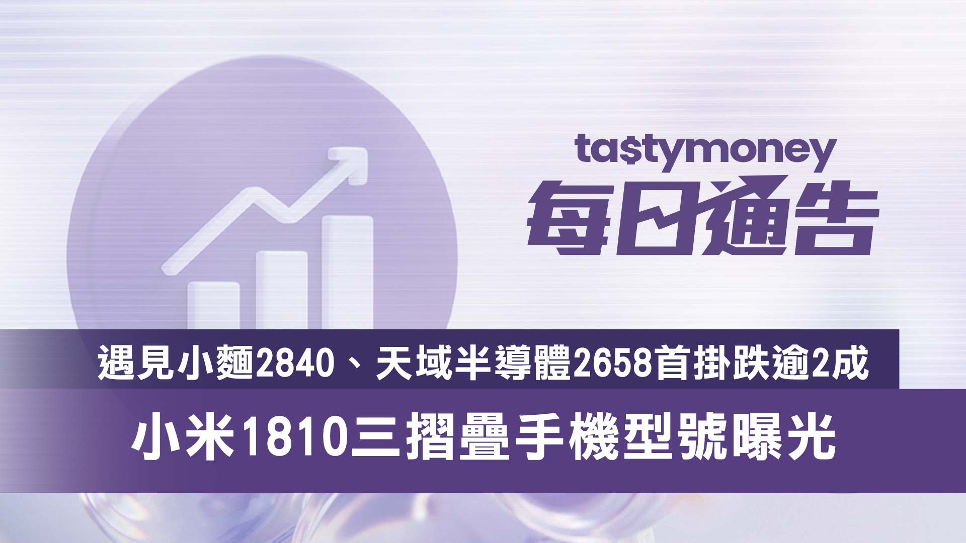 【每日通告】遇見小麵2840、天域半導體2658首掛跌逾2成,小米1810三摺疊手機型號曝光