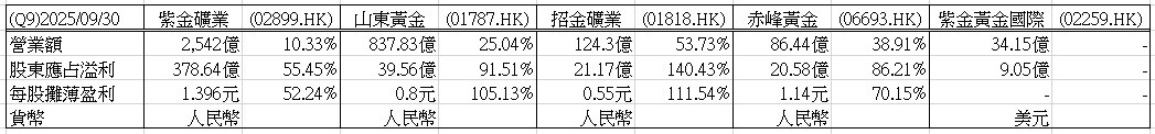 隨著金價、銀價、銅價等貴金屬價格上升,一眾金礦股今年首三季的業績皆表現甚佳。今年一至九月,紫金礦業的營業額達2,542億元人民幣(下同),按年上升10.33%,純利達378.64億元,按年上升55.45%,每股攤薄盈利為1.396元,按年上升52.24%。