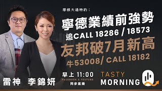 寧德業績前強勢 追CALL 18286/ 18573 友邦破7月新高 牛53008/ CALL 18182|雷神 李錦妍|Tasty Morning Q 2025-07-28