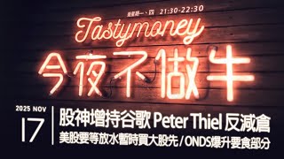 股神增持谷歌Peter Thiel反減倉/美股要等放水暫時買大股先/ONDS爆升要食部分 港股美股財經直播 | 晚間吹水談歡 | 今夜不做牛 2025-11-17