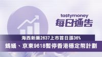 【每日通告】海西新藥2637上市首日漲36%,螞蟻、京東9618暫停香港穩定幣計劃