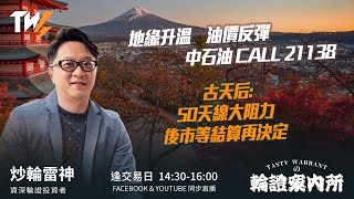 地緣升溫 油價反彈 中石油 CALL 21138古天后:50天線大阻力 後市等結算再決定 |雷神 Lino|Tasty Warrants 2025-12-22