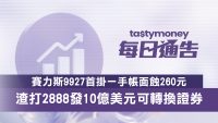 【每日通告】賽力斯9927首掛一手帳面蝕260元,渣打2888發10億美元可轉換證券