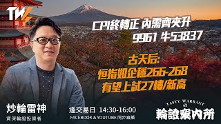 CPI終轉正 內需齊夾升 9961 牛53837 古天后:恒指如企穩266-268 有望上試27樓/新高 |雷神 Lino|Tasty Warrants 2025-11-10