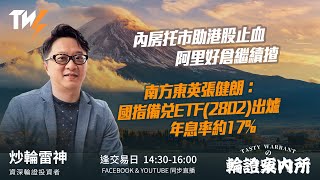 內房托市助港股止血 阿里好倉繼續揸南方東英張健朗:國指備兌ETF(2802)出爐 年息率約17%|雷神 Wingyu|Tasty Warrants 2025-12-10