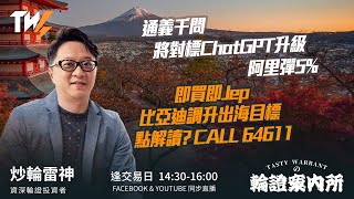通義千問將對標ChatGPT升級 阿里彈5% 即買即Jep 比亞迪調升出海目標 點解讀? CALL 64611|雷神 Vivian|Tasty Warrants 2025-11-13