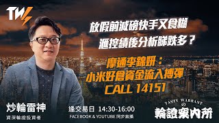 放假前減磅快手又食糊 滙控績後分析睇跌多?摩通李錦妍:小米好倉資金流入搏彈 CALL 14151 |雷神 Wingyu|Tasty Warrants 2025-10-28